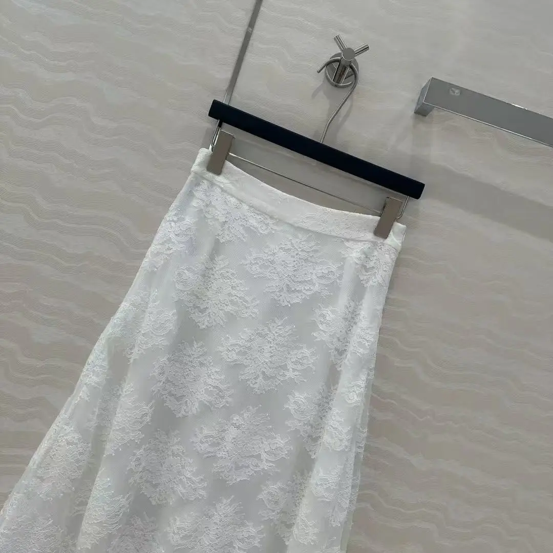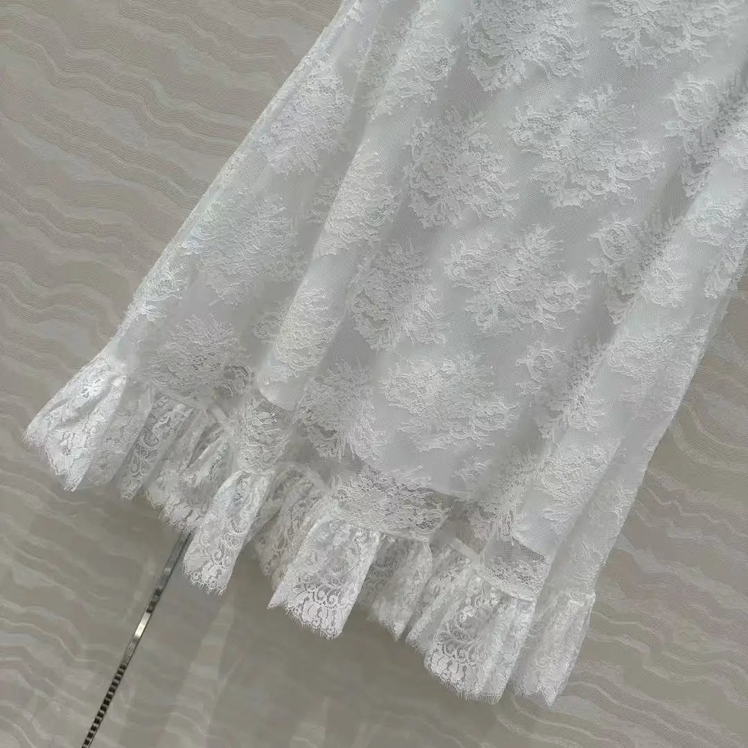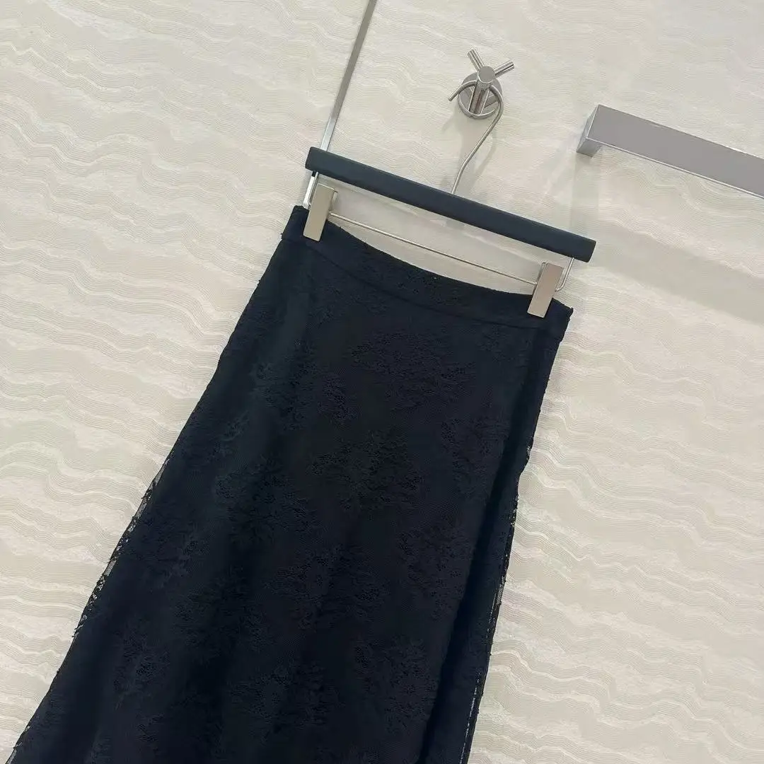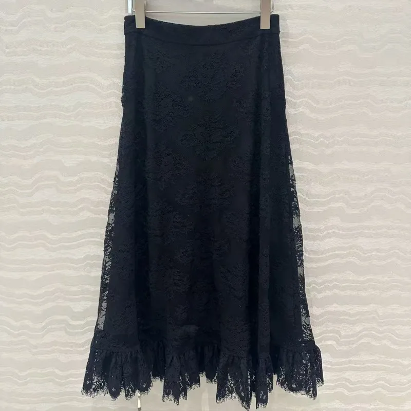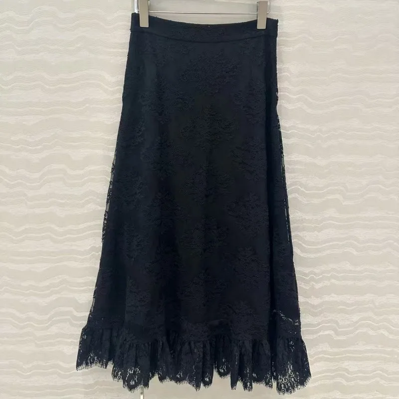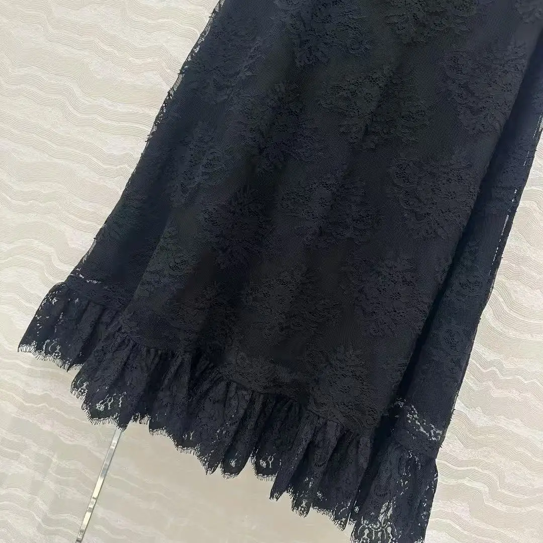 25-year-old summer new style lace-trimmed A-line high-waisted slimming long dress with skirt hem