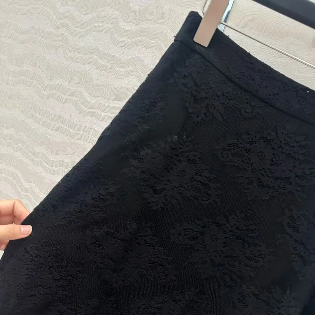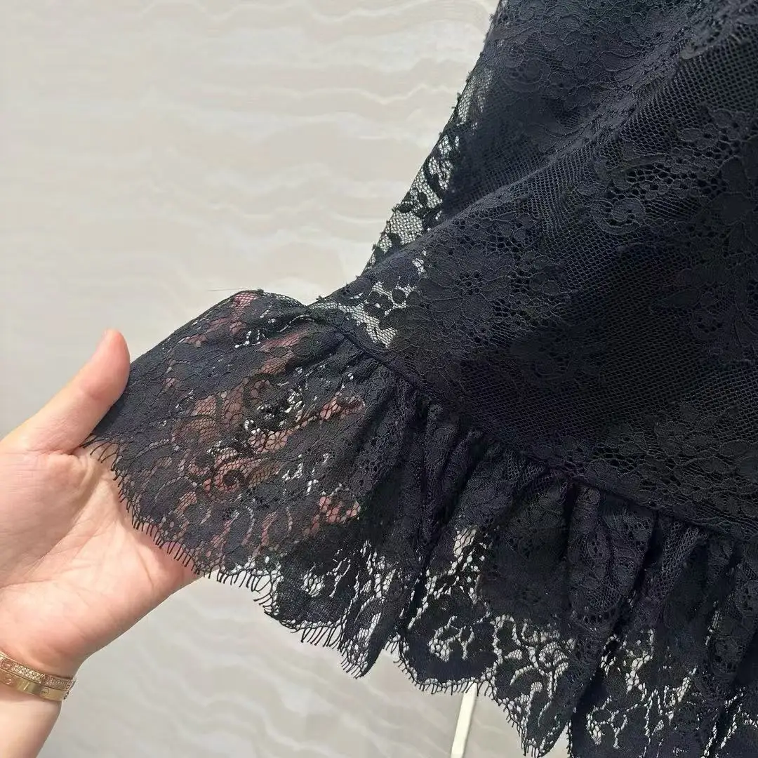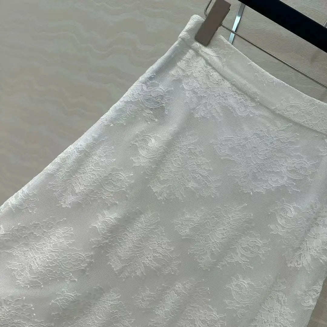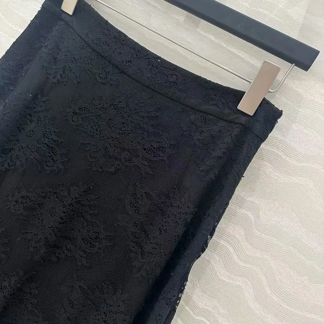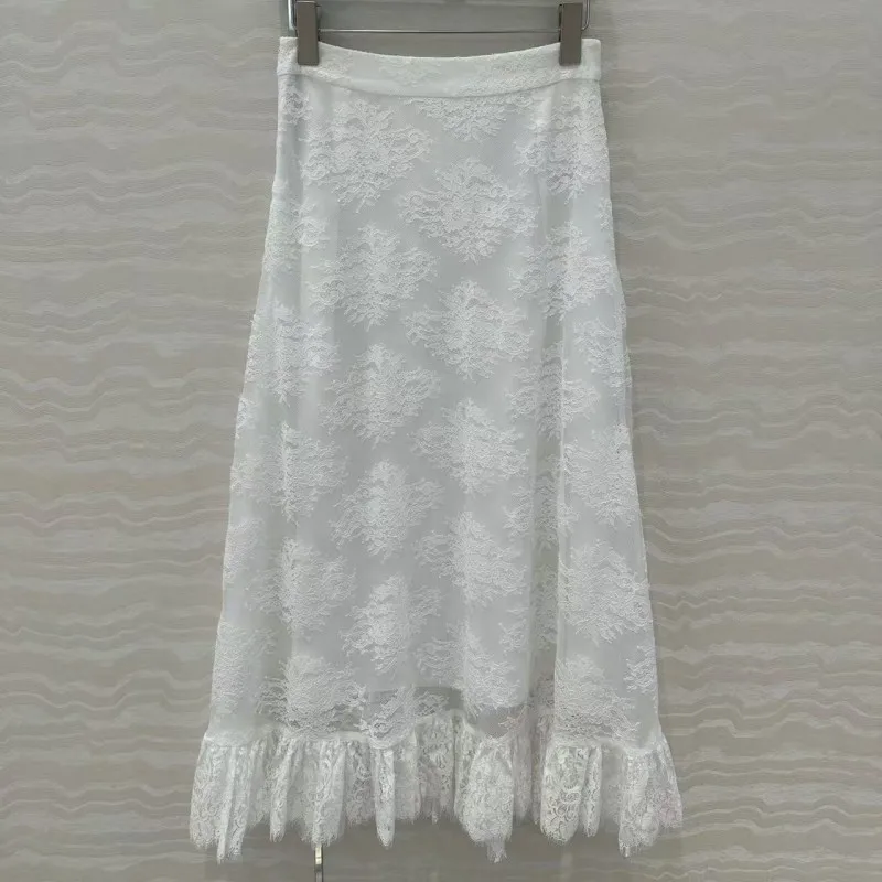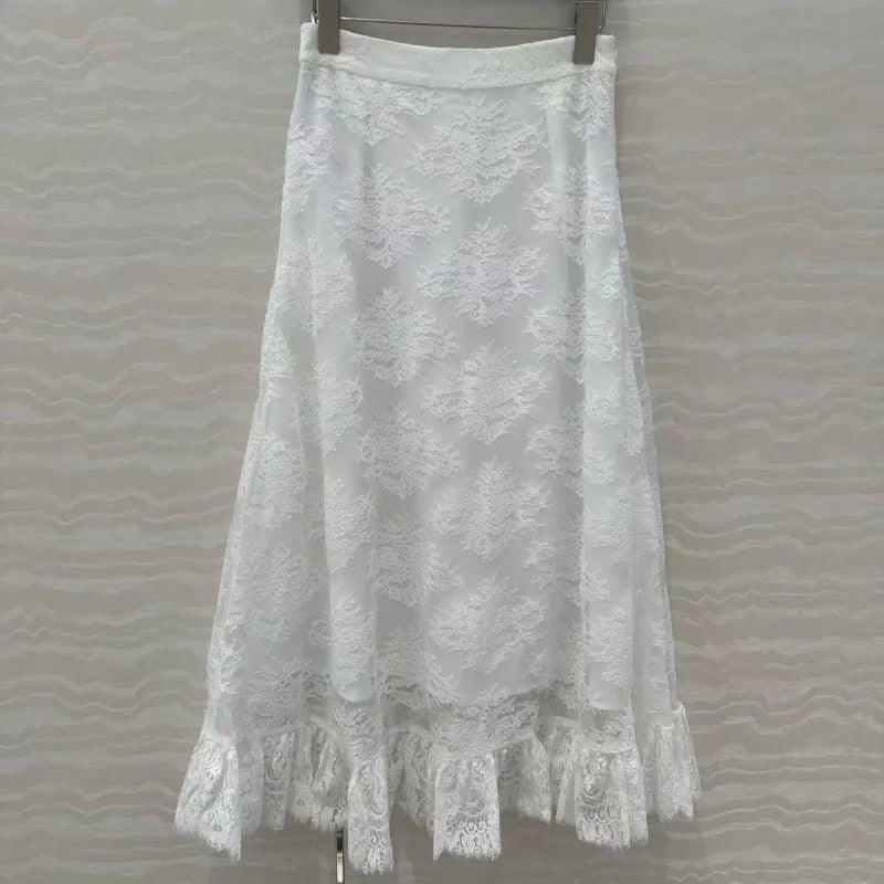 25-year-old summer new style lace-trimmed A-line high-waisted slimming long dress with skirt hem
