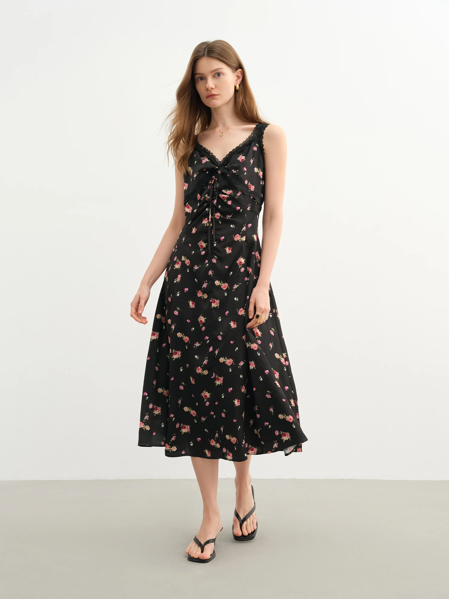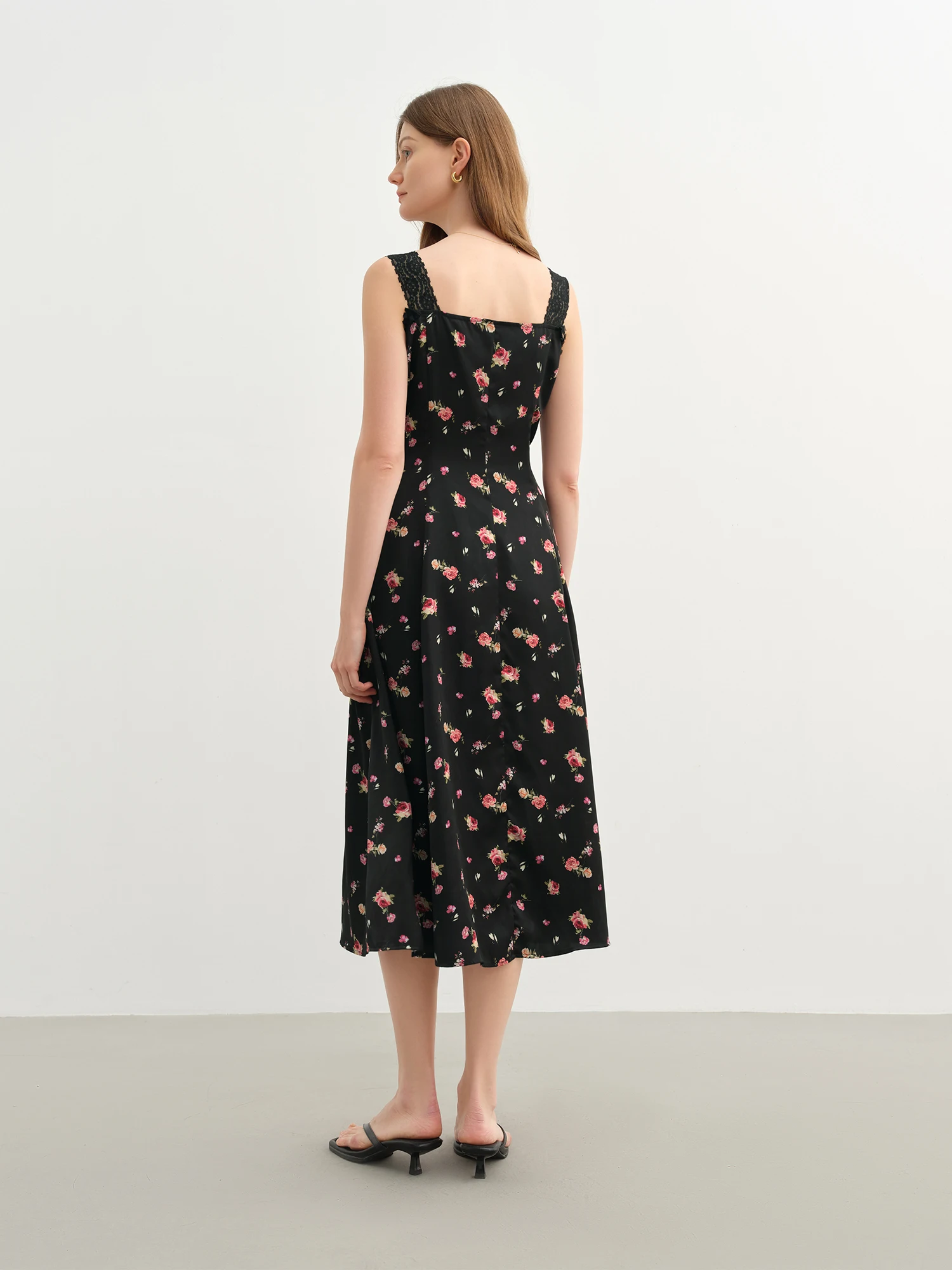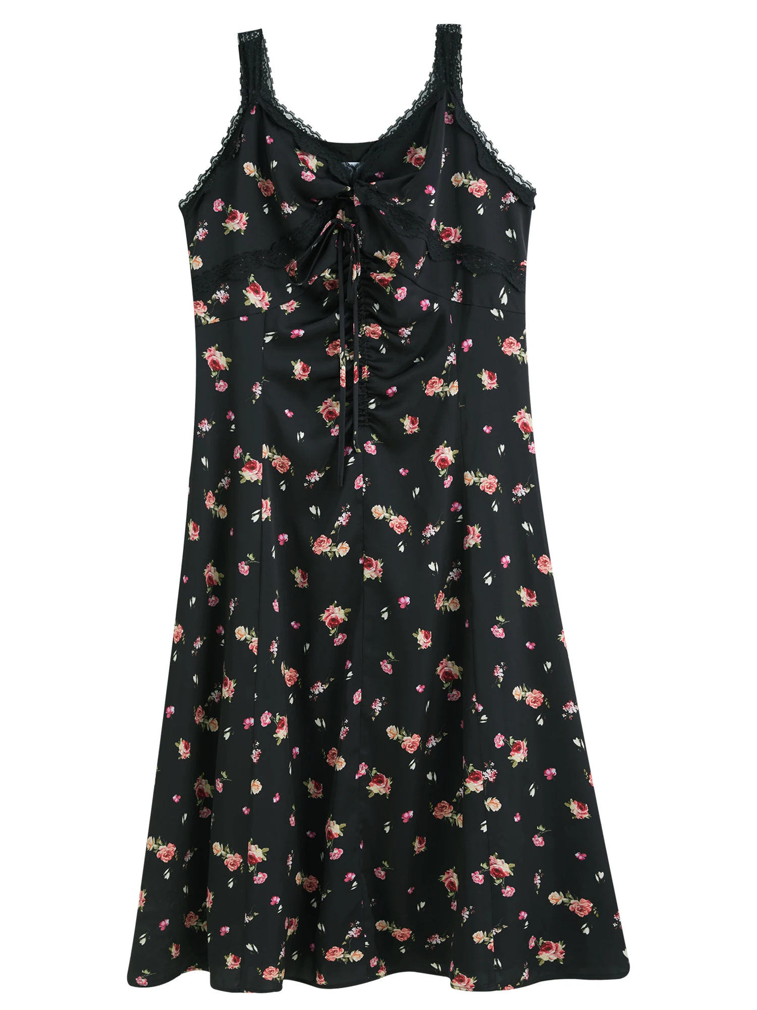 DUSHU Plus-Size Women's【Midnight Rose】 Lace Strapless Dress - 2025 Summer New Arrival Knot Slimming Long Dress 25DS82259