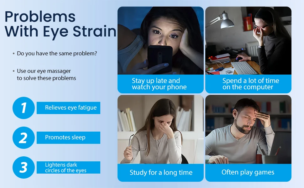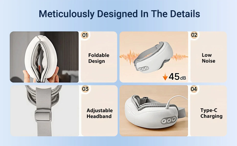 This eye massager offers three heat levels (104°F, 107.6°F, 113°F) to soothe eye strain, fatigue, and dark circles, bringing spa-like comfort to you.