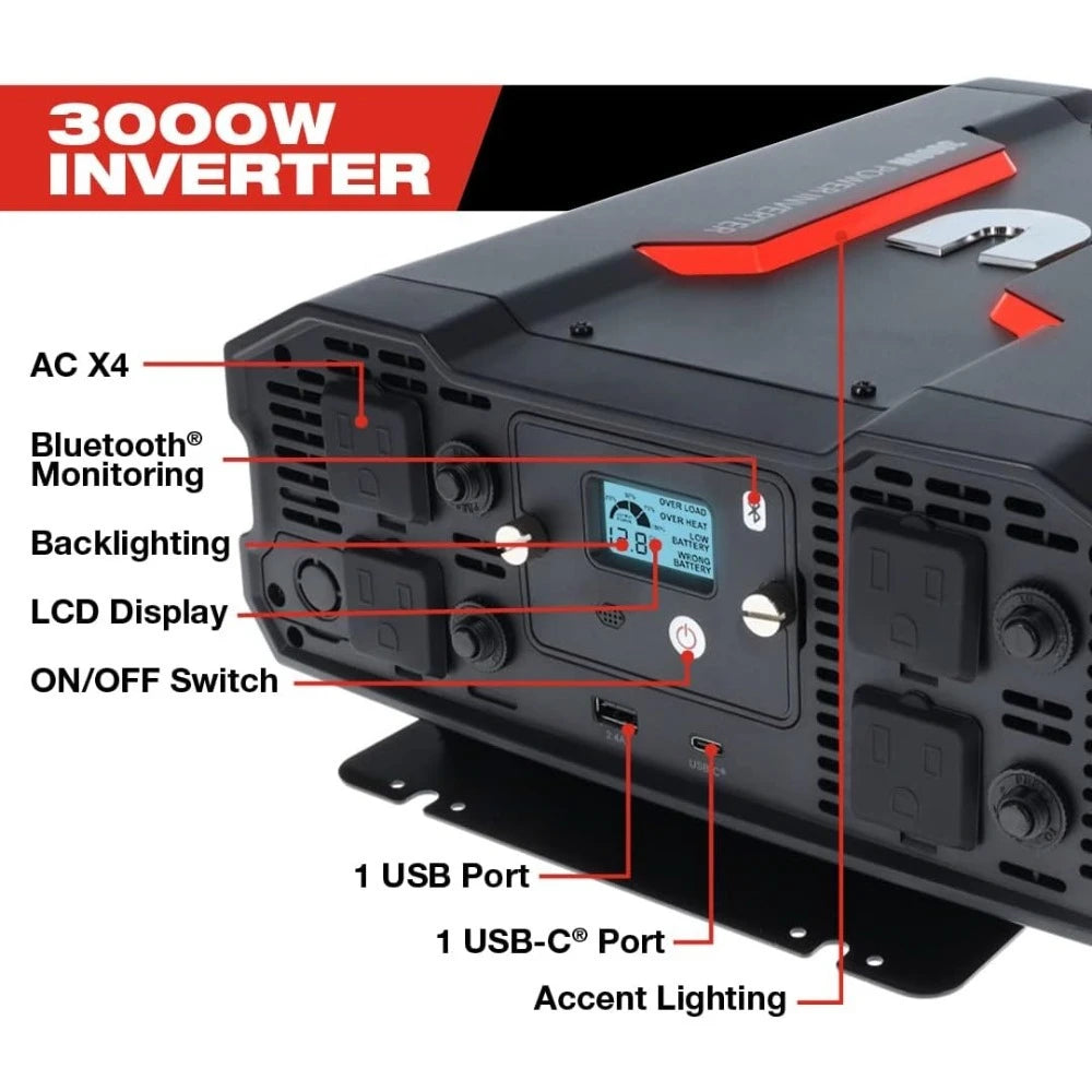 - brand power inverter that transforms DC power into AC power to run larger devices like home appliances and power tools up to 3000W
