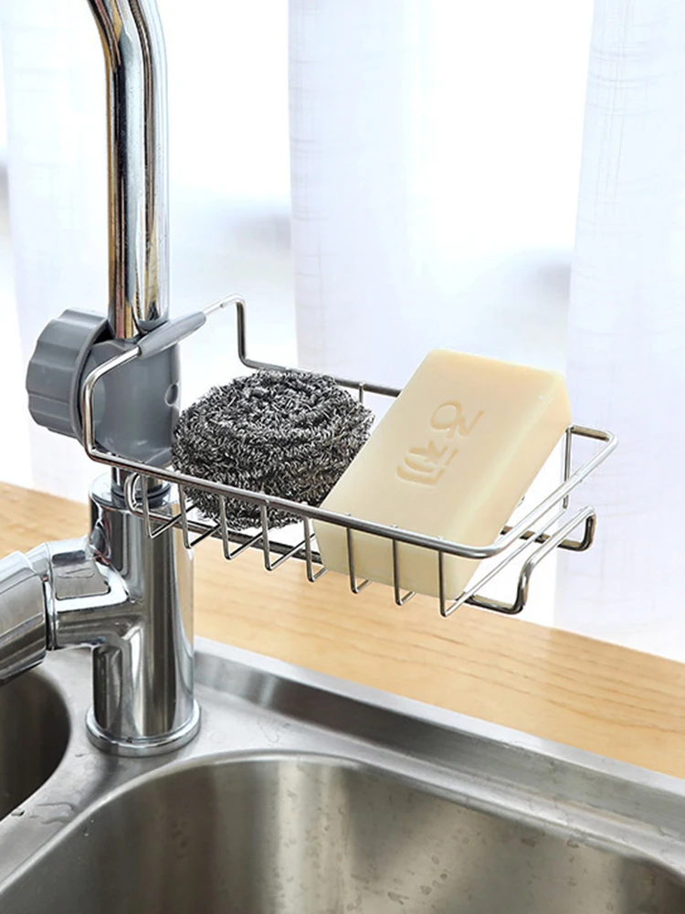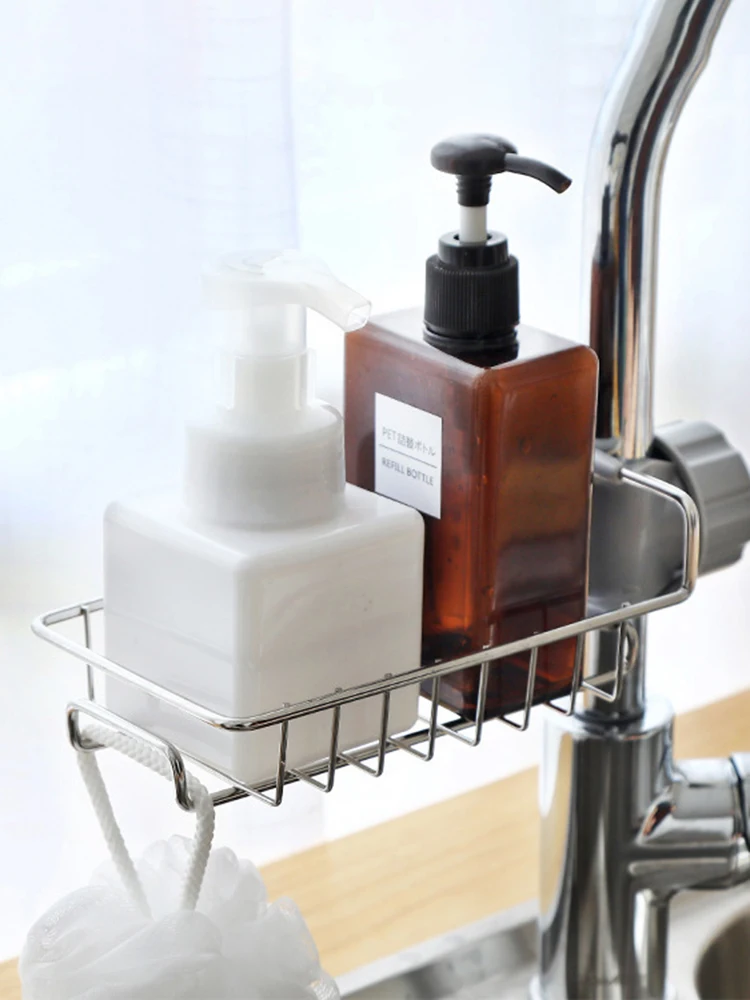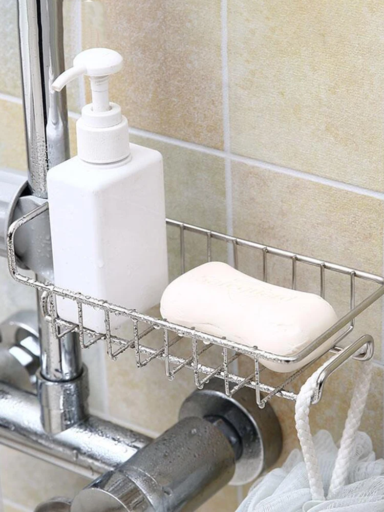 Crafted from durable stainless steel, this faucet storage rack ensures longevity and resistance to corrosion.