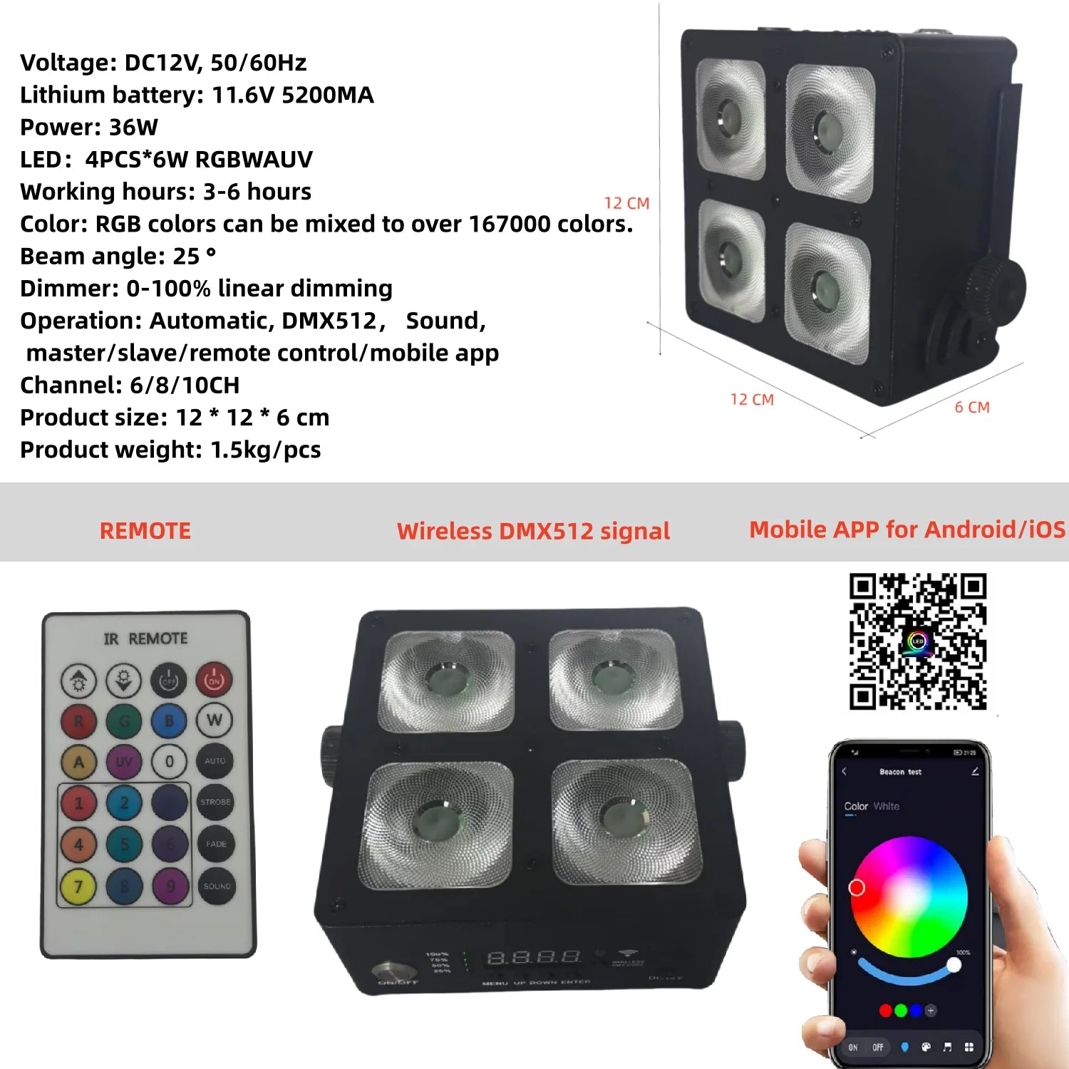 6PCS/remote 4X6W RGBWA UV 6-IN-1 battery LED PAR/wireless WIFI battery led PAR light/ led walling wash lgiht stage dj lamp