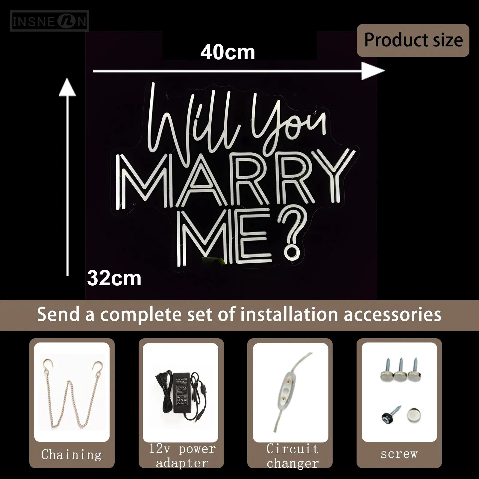 Will You Marry Me Neon Signs LED Wedding Mariage Decor Signboards Party Room Wall Decor Wedding Neon Sign with 12V Power Adapter