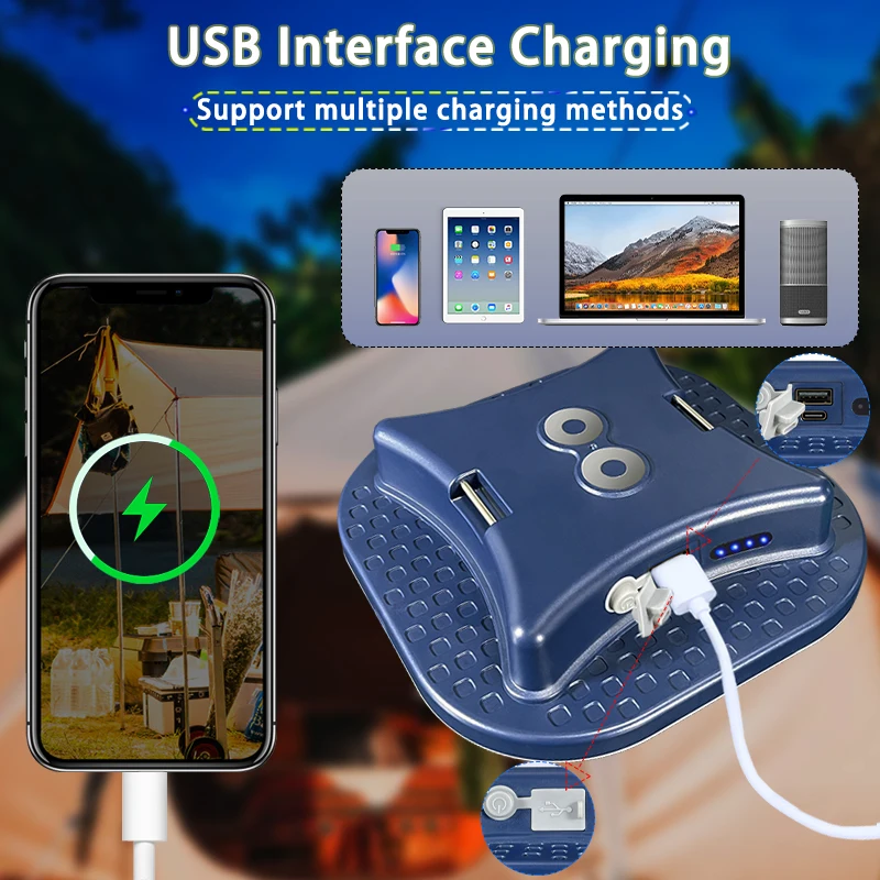 2.Portable charger: MOS-LY01 camping light has a built-in rechargeable battery and can also be used as a portable mobile power source. It comes with a 5V 2A Type-C input port and a 5V 2A USB output port, making it a portable backup power source. You can charge your phone anytime, anywhere.