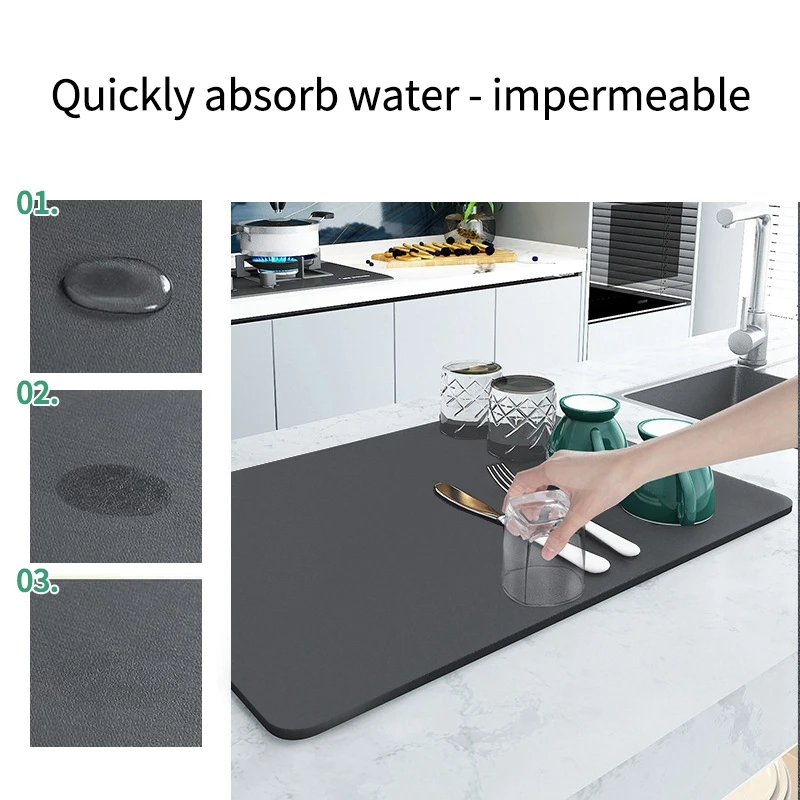 RUBBER MAT Solid Color Kitchen Drying Pad Coffee Machine Mat Super Absorbent Non-slip Dry Rubber Tableware Rug Microwave Oven Dust Pad