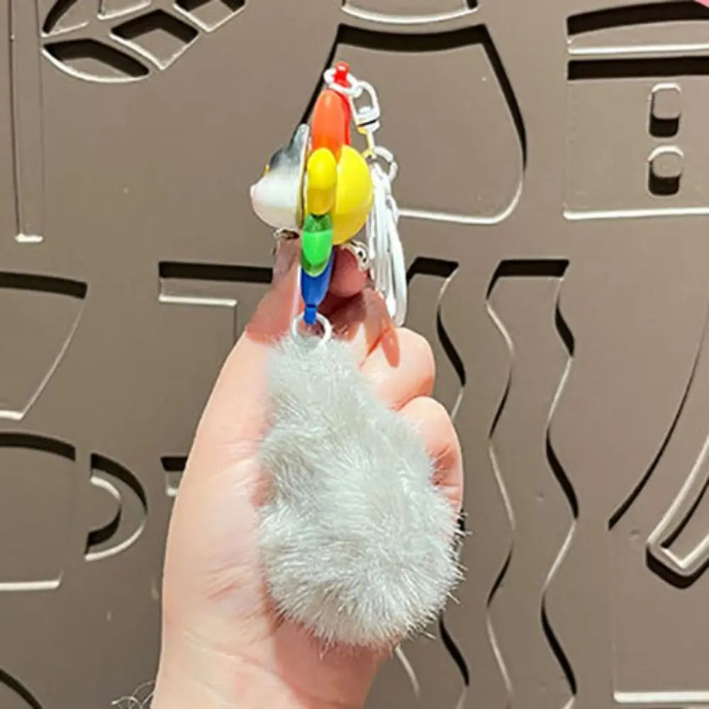 PVC BALL KEYRING Creative Rotatable Cat Keychain Good Luck with Fur Balls Car Keyring PVC Cartoon Bag Accessories Girls