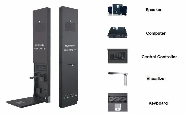 Document cameras, also known as visual presenters, visualisers, digital overheads, or docucams, are real-time image capture devices for displaying an object to a large audience. Like an opaque projector, a document camera is able to magnify and project the images of actual, three-dimensional objects, as well as transparencies.