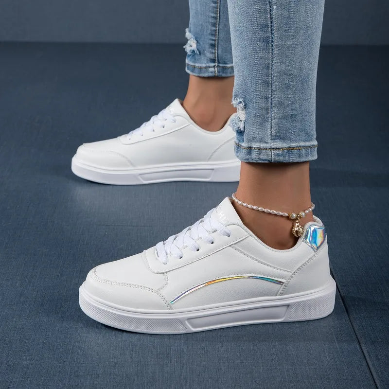 FABRIC LADY SHOES YRZL White Shoes Women Sneakers High Quality Waterproof Leather Casual Ladies Shoes Trend Flat White Tennis Shoes for Woman