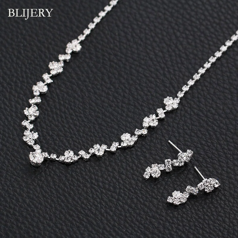BLIJERY Fashion Bridesmaid Bridal Jewelry Sets for Women Rhinestone Crystal Necklace Earrings Sets Prom Wedding Jewelry Sets
